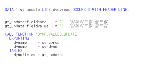 화면에 데이터를 업데이트하는 펑션 < DYNP_VALUES_UPDATE >에 대해서 알아보겠습니다.