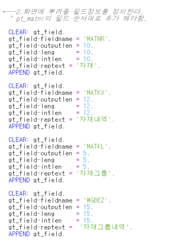 ** 필드속성을 하나씩 정의할 수 도 있지만 펑션 <DDIF_FIELDINFO_GET> 을 사용하여 정의할 수도 있습니다.
