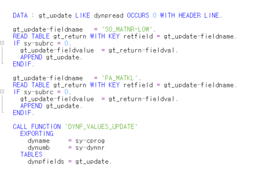 화면에 데이터를 업데이트하는 펑션 < DYNP_VALUES_UPDATE >에 대해서 알아보겠습니다.