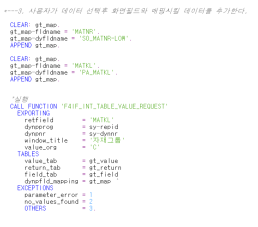 SAP 스탠다드에서 제공하는 Secrch Help 펑션 F4IF_INT_TABLE_VALUE_REQUEST 에 대해 알아보겠습니다.